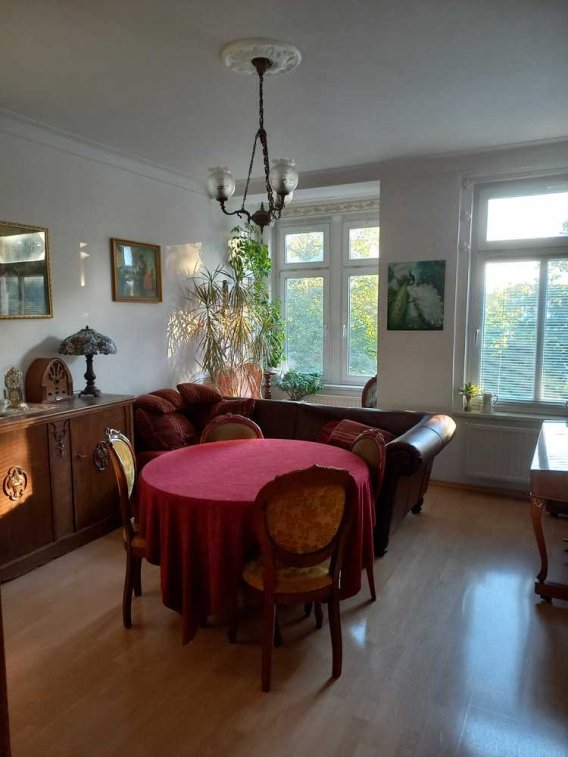 Schön renovierte 2 Raumwohnung mit kleinem Balkon aus der Gründerzeit in guter Lage . Möbel werden - wenn gewünscht - günstigst abgegeben. Die ansprechende Wohnung kann ab sofort bezogen werden. Die Wohnung verfügt über zwei schöne Zimmer, ein helles Wohnzimmer, Schlafzimmer, Küche, Bad und Diele. Auf dem Balkon lässt es sich wunderbar vom Alltagsstress erholen. Zur Verfügung steht Ihnen außerdem ein absperrbarer Abstellraum im Treppenflur sowie ein geräumiger Kellerraum.