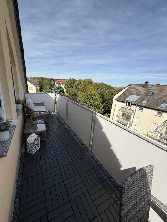 Der Balkon lädt zum Entspannen und Sonne tanken ein und ist in der 4. Etage nahezu uneinsichtig.