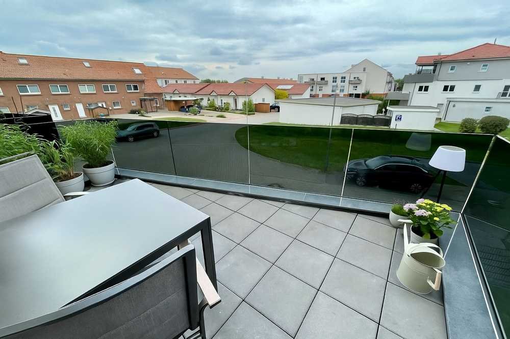 Großer Balkon mit moderner Glasumrandung: Der großzügige Balkon mit 10 Quadratmetern bietet Ihnen viel Platz für entspannte Stunden an der frischen Luft und ist dank der modernen Glasumrandung ein echtes Highlight.