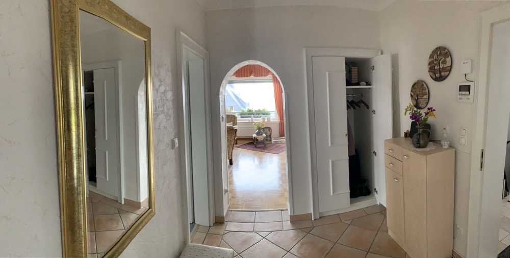 Ein großes, attraktives Wohnzimmer mit Essecke, Panoramafenstern und einzigartigem Fernblick sind der Mittelpunkt dieser besonderen Mietwohnung. Neben Schlafzimmer, Küche, Diele, Bad und eigenem Balkon, steht eine Terrasse und ein großer Garten zur Mitbenutzung zur Verfügung.