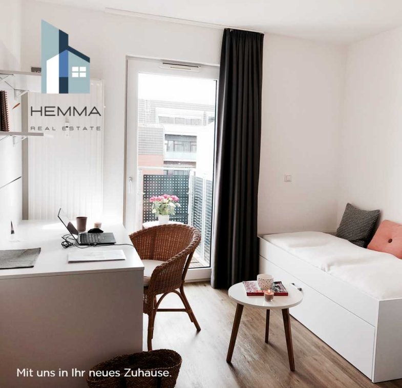 Das Apartment ist umfassend möbliert. Die schönen, weißen Möbel sind aus Holz. Hierzu zählen Bett, Schreibtisch, Kleiderschrank, Küchenzeile mit Schränken, Herd mit 2 Kochplatten und Spüle.