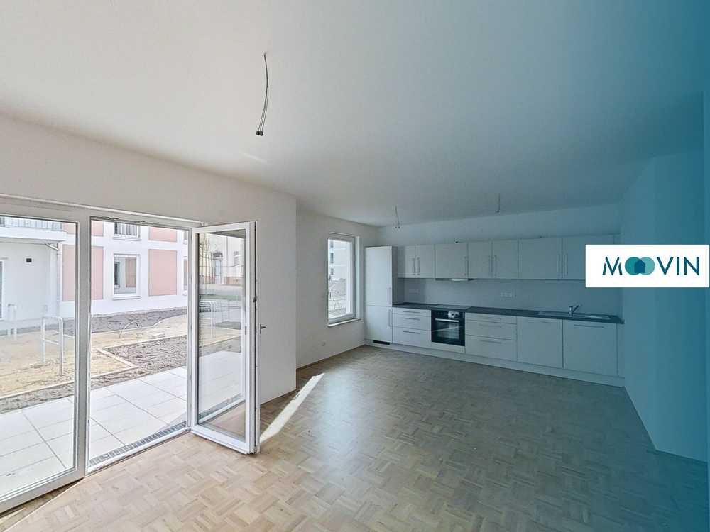 Herzstück ist der große Wohn- und Essbereich mit einer weißen, stilvollen Einbauküche inkl. Kochfeld, Dunstabzugshaube, Backofen, Spüle, Kühlschrank und Geschirrspülmaschine.
