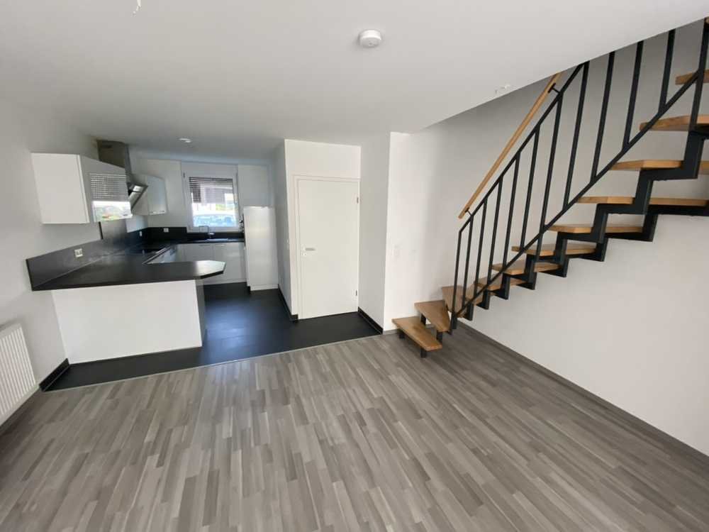 Im Eingangsbereich finden Sie nützlichen Stauraum für Garderobe und Schuhschränke sowie ein praktisches Gäste-WC. Von hier gelangen Sie in den offen gestalteten Wohn- und Essbereich. Eine moderne, hochwertige Einbauküche ist bereits integriert und im Mietpreis enthalten. Zugang zur sonnigen Terrasse mit angrenzendem, pflegeleichtem Garten rundet das Erdgeschoss perfekt ab.