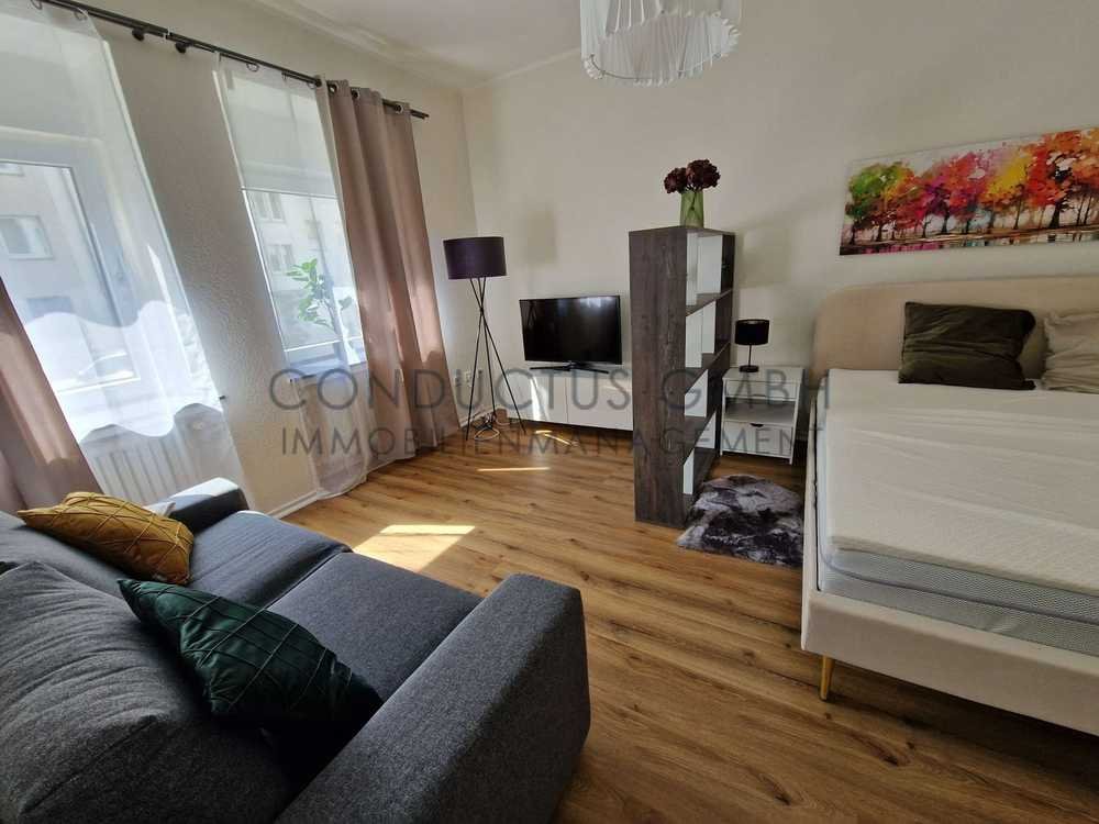 Der helle und einladende Wohn-/Schlafraum im Hochparterre eines gepflegten Wohnhauses schafft eine gemütliche Atmosphäre, die sofort das Gefühl vermittelt, zu Hause zu sein.