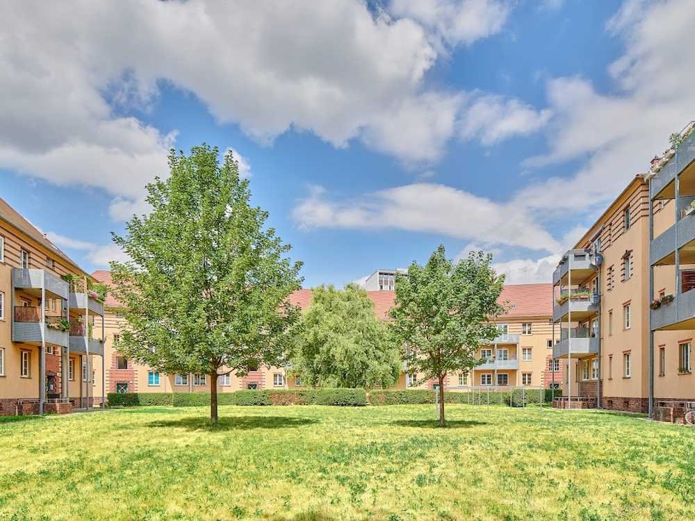 Lebendige Nachbarschaften und Service vor Ort: Unsere Mitarbeiter:innen begrüßen Sie in der regelmäßigen Mietersprechstunde im Mieterservicebüro ganz in der Nähe. Um die optimale Pflege der Anlage kümmert sich unser Hausmeisterservice.