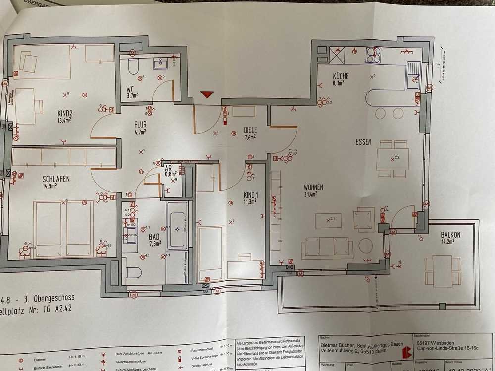 Diese hochwertige 4-Zimmer-Wohnung (plus Abstellkammer) mit ca. 108 m² Wohnfläche befindet sich im 3. Obergeschoss eines modernen Mehrfamilienhauses in Wiesbaden. Die Wohnung verfügt über einen Balkon, sowie über einen Aufzug, der den Zugang erleichtert. Ein Gäste-WC, ein Keller und eine Gemeinschafts-Waschküche bieten zusätzlichen Komfort. Die Wohnung wird ab dem 1.12.2025 verfügbar sein. Haustiere sind nach Vereinbarung erlaubt. Zur Wohnung gehört ein abgeschlossenes Garagenabteil in der Tiefgarage, E-Lademöglichkeiten können eingerichtet werden!