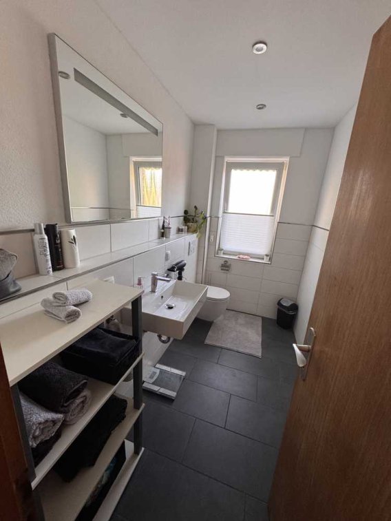 Diese Wohnung wurde im Frühjahr 2024 komplett saniert und modernisiert. Es ist ein 2 Parteien Haus, diese Wohnung liegt im EG. Es gibt einen Kellerraum, ein geräumiges Badezimmer, ein großes Wohnzimmer, Schlafzimmer, ein kleinen Abstellraum mit Anschluss für die Waschmaschine, eine Küche mit schon direkter Einbauküche die in der Miete vorhanden ist, sowie draußen hintenrum eine Garage und ein Stellplatz die bei der gesamten Miete von 870€ enthalten sind.