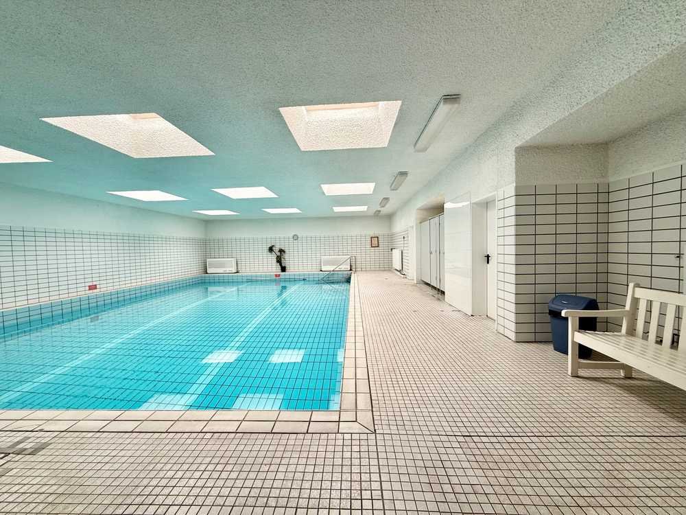 Vervollständigt wird dieses attraktive Angebot durch ein großes beheiztes Schwimmbad im Haus, welches allen Bewohnern zur Verfügung steht aber nur selten genutzt wird. In diesem Wellnessbereich befinden sich auch ein Fitnessraum, ein Solarium sowie eine Sauna, getrennte Duschen und ein Ruhebereich.