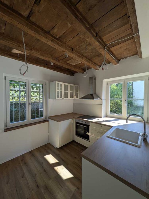 Im Rahmen der Sanierung wurde das Haus mit eine Pellett-Zentralheizung und die Wohnung selbst mit neuen Fenstern sowie Elektrik ausgestattet.