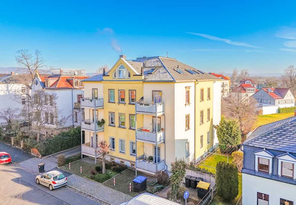 Die großzügige und gepflegte 3-Raum-Wohnung befindet sich sehr bequem im 1. OG des „Haus Richard“ - benannt nach dem deutschen Komponisten Richard Georg Strauss - ein um 1908 in Massivbauweise errichtetes und 1995 hochwertig kernsaniertes Altbau-Mehrfamilienhaus. Es besticht durch eine hochwertige, massive Bauweise mit schöner Fassade & Fensterlaibungen aus Sandstein sowie eine gepflegte Außenanlage mit PKW-Stellplätzen auf dem Grundstück. Das attraktive Gebäude ist umgeben von Grünflächen mit altem & neuem Baumbestand. Über den Flur der Wohnung gelangt man in das Bad mit Fenster und Wanne sowie in den großen Wohnraum als auch die Schlafzimmer. Die separate Küche mit Fenster, neuer Einbauküche nach Maß und einem Balkon ist vom Wohnzimmer aus begehbar. Zur Wohnung gehört ein nachgefragter PKW-Stellplatz auf dem Grundstück, ein Kellerraum sowie ein WM-Stellplatz im Waschraum. Geschäfte des täglichen Bedarfs, eine direkte ÖPNV-Anbindung in das Dresdner Zentrum (15 Min. mit der S-Bahn), Freizeitmöglichkeiten, Cafés & Restaurants, sowie Schulen & Kindergärten befinden sich fußläufig. Das beliebte Elbsandsteingebirge ist nur ca. 15 PWK-Minuten entfernt!