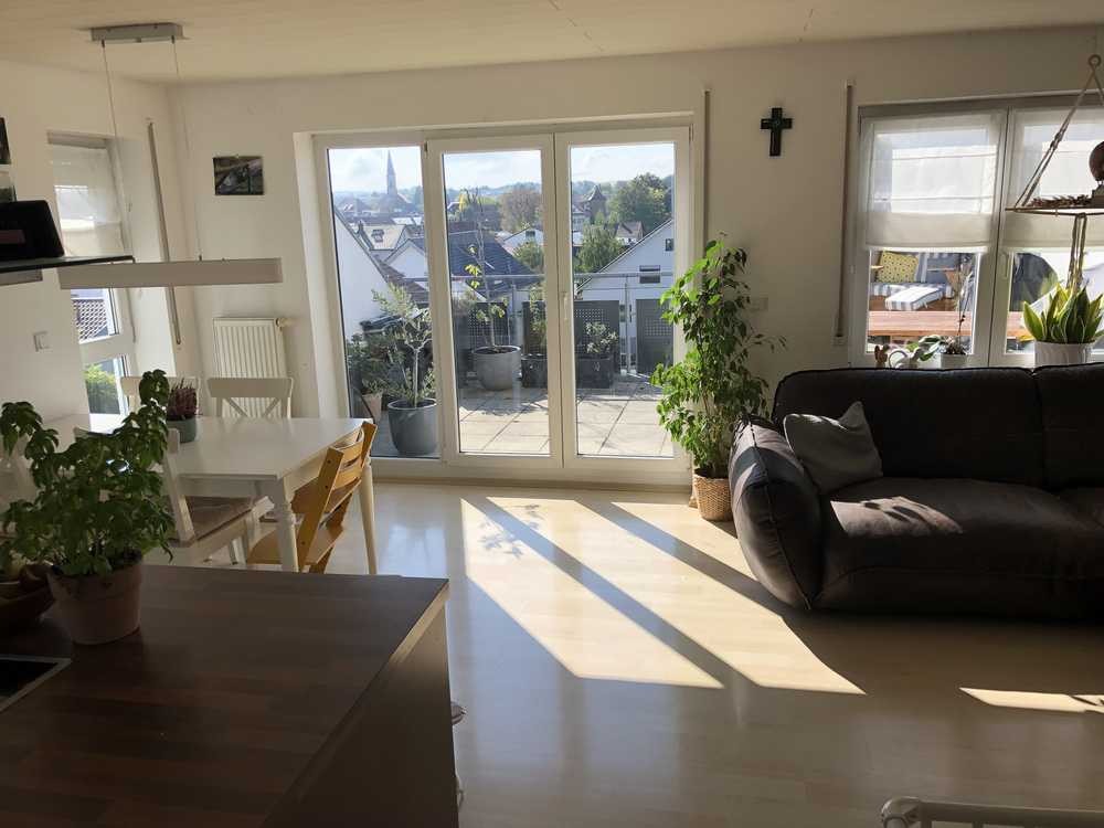 Das Herzstück der Wohnung ist der offen gestaltete Wohn-Essbereich mit moderner, offener Küche. Hier genießen Sie viel Tageslicht und direkten Zugang zur großen, südlich ausgerichteten Dachterrasse, die zum Sonnen, Entspannen oder geselligen Abenden einlädt.
