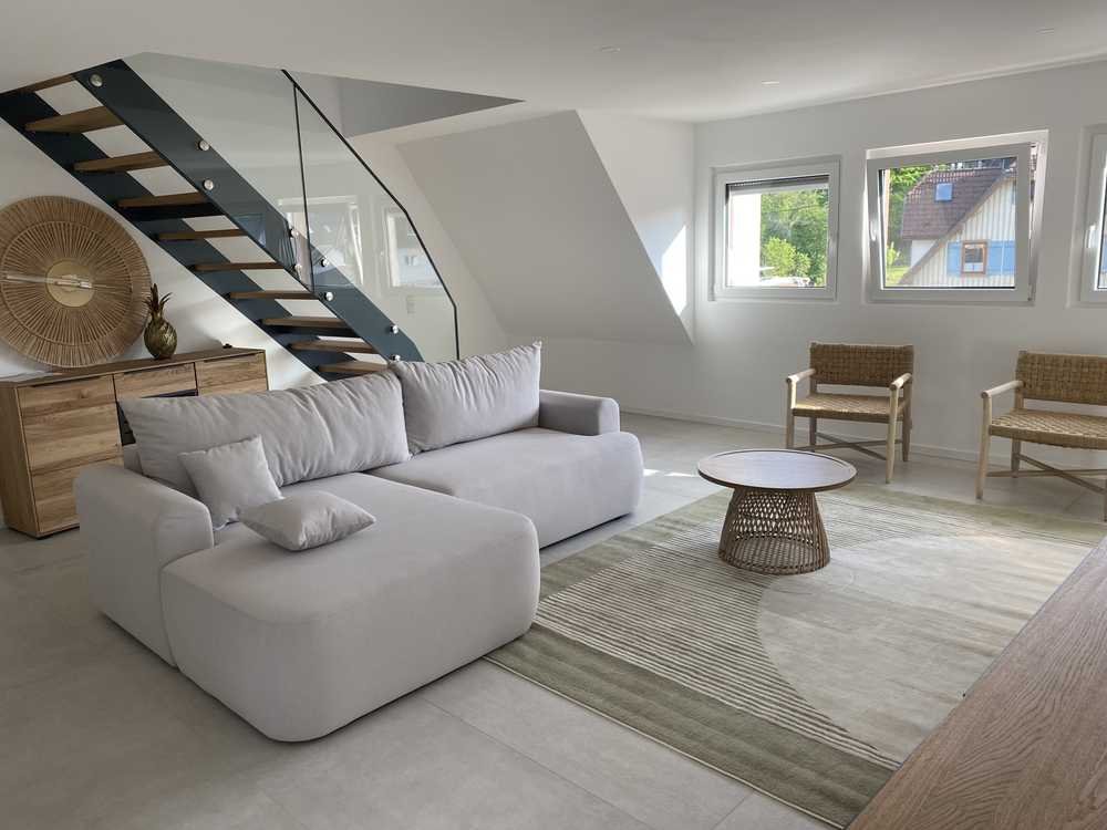 Die attraktive und lichtdurchflutete 3,5 Zimmer Neubau-Maisonette-Wohnung im Dachgeschoss lädt mit ihrem modernen und besonderen Stil zum wohlfühlen ein. Der Balkon bietet ausreichend Raum, um die Abendsonne zu genießen und zu entspannen. Die Wohnung verfügt über ein Wohn-Essbereich, ein Schlafzimmer, eine Galerie im 2. DG, ein sehr großzügiges Tageslicht-Badezimmer mit XL-Dusche, Waschtisch/-unterschrank und Spiegel und ein Abstellraum mit Waschmaschinenanschluss. Die hochwertige und moderne Einbauküche lässt keine Wünsche offen und ist mit 60€ monatlich im aufgeführten Mietpreis enthalten. Die sonnendurchflutete ca. 41qm große Galerie im Dachgeschoss lässt viel Raum zum entfalten und sorgt mit dem stilvollen Echtholz-Parkett und dem Infrarotheizkörper für ein angenehmes Klima. Die Böden im unteren Wohnbereich erzeugen mit der Fußbodenheizung und ihren großen und hellen XL-Fliesen ein modernes und gemütliches Wohngefühl. Zur Wohnung gehört ein geräumiger Keller, der ausreichend Stauraum bietet. Der Fahrradkeller mit wohnungsbezogenen E-Bike-Ladestationen und ein Wasch- und Trockenraum sind zur Nutzung vorhanden. Der gemeinsam genutzte Garten lädt ebenfalls zum entspannen ein. Ein Tiefgaragenstellplatz mit Stromanschluss und einer Wallboxen zum laden sind vorhanden.