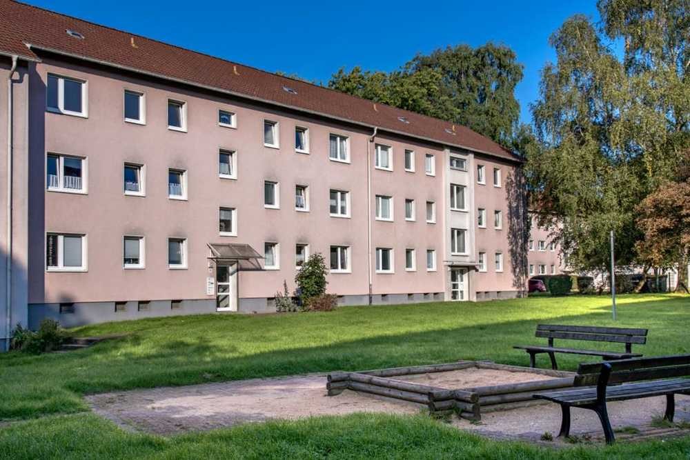 Umgeben von großzügigen Grünflächen befindet sich die Wohnung im Erdgeschoss eines Mehrfamilienhauses in unserer Wohnlage Harkortsiedlung in Merklinde. Kostenfreie Parkmöglichkeiten vor dem Haus.