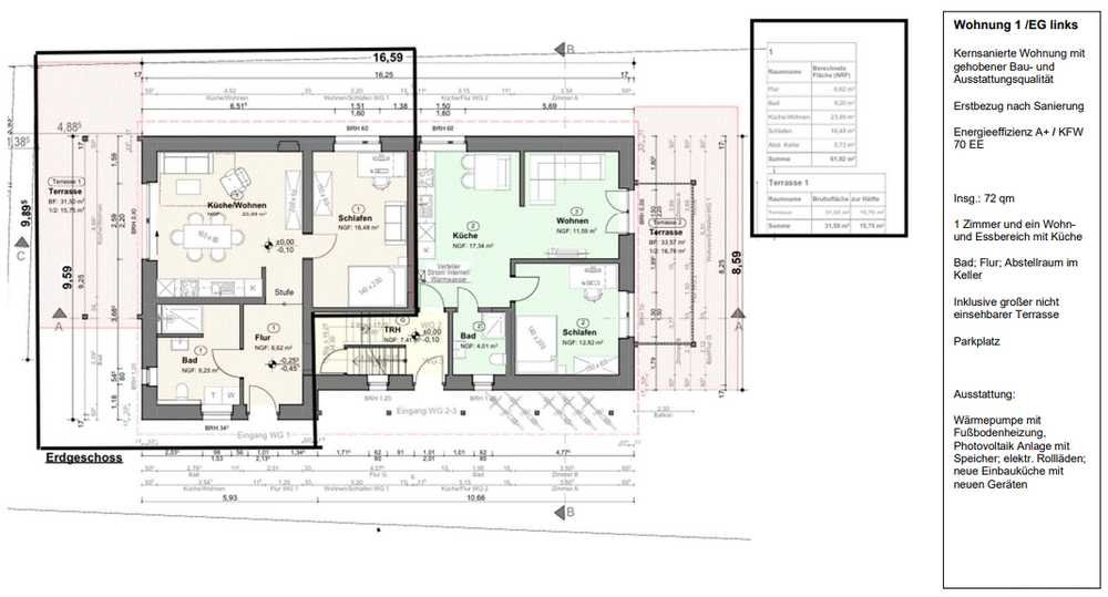 Diese attraktive 1-Zimmer Wohnung zuzüglich eines offenen Wohn-Essbereiches mit ca. 72 m² Wohnfläche befindet sich im Erdgeschoss eines kernsanierten Wohnhauses mit insgesamt 4 Wohneinheiten in Osnabrück-Haste. Die Wohnung verfügt über eine gehobene Innenausstattung und einer großen Sonnenterrasse, die zum Entspannen einlädt. Ein eigener Kellerraum bietet zusätzlichen Stauraum. Die Wohnung ist mit einer neuen Einbauküche ausgestattet. Ein Stellplatz steht zur Verfügung. Die Wohnung ist ab dem 1. Januar 2026 verfügbar. (Nach Vereinbarung evtl. auch eher). Die Wohnung eignet sich für Alleinstehende und Paare. Die Sanierung des Objektes ist im Dezember abgeschlossen.