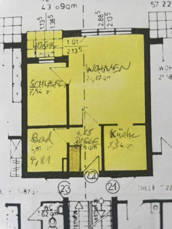 Die frisch renovierte 43,84 qm Wohnung umfasst: