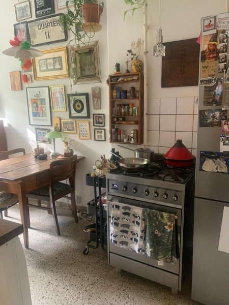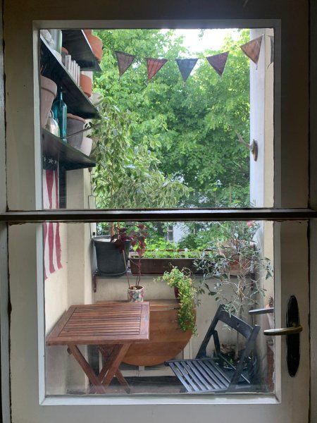 In einem Zimmer finden Sie ein gemütliches Hochbett, einen Holzschreibtisch und ein Fenster zum grünen Garten. Im anderen, größeren Zimmer finden Sie eine große Kommode mit viel Stauraum, einen großen Smart-TV und ein gemütliches Sofa für zwei Personen! Das Zimmer ist durch ein luftiges Regal geteilt, auf der anderen Seite befinden sich ein Doppelbett ein großes Fenster zum Hof und die Balkontür. Gemütlichkeit und Komfort garantiert! Der Balkon mit Blick auf die grüne Oase des Hinterhofs ist groß genug für einen Tisch und einen Brunch.