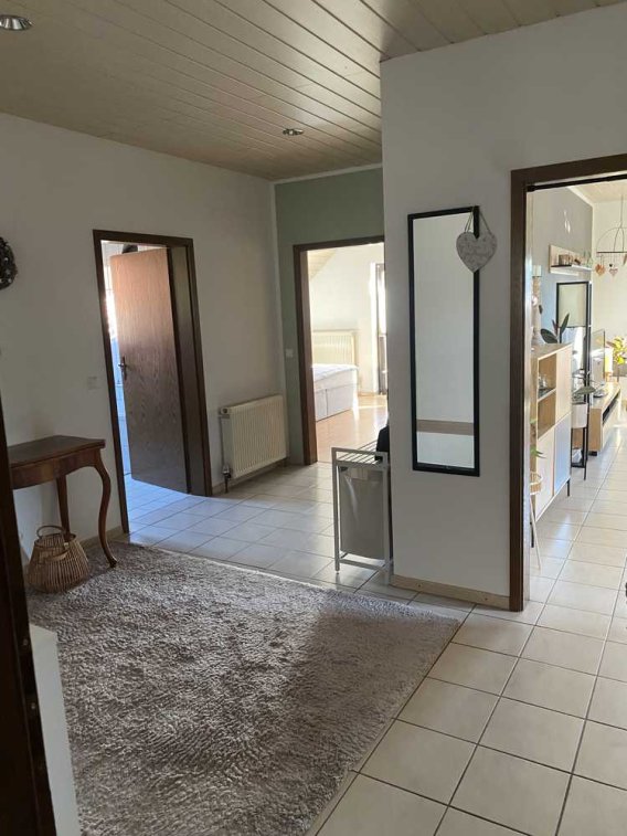 Helle 3 Zimmer plus Küche und Bad-Wohnung im Obergeschoss eines freistehenden Zweifamilienhauses in verkehrsberuhigter Lage in Wöllstein ab 01.11.25 von privat zu vermieten.