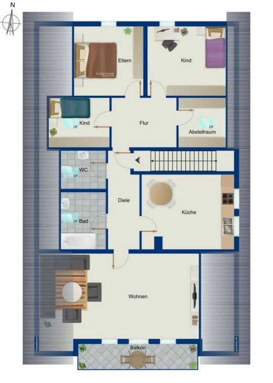 Die 4,5-Zimmer Dachgeschosswohnung erstreckt sich über das gesamte Dachgeschoss und wird über das Treppenhaus betreten.