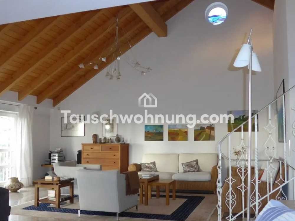 Wer gerne viel Platz und Luft hat wird hier zu Hause sein. Ein riesiges Wohnzimmer im Obergeschoss mit einer Holzbalkendecke die schräg bis zu 4 m in die Höhe ragt. Fenster in allen Himmelsrichtungen mit Blick über die Altstadt und mehr. Und drei Balkons, falls es drinnen doch zu eng wird. Einige Stufen höher gibt es ein offenes Arbeitszimmer mit ca. 22 qm, auch mit Holzbalkendecke. Sonst noch Küche, Esszimmer, zwei Badezimmer und zwei Schlafzimmer mit jeweils 21 und 8 qm. Die Wohnung ist in der Nähe vom Stadtgarten.