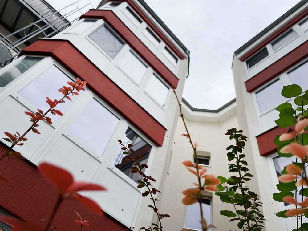 Der funktionale Grundriss bietet einen großzügigen Wohnbereich mit viel Tageslicht (u. a. durch das Wintergartenelement). Die Küche ist offen ins Wohnen integriert. Das gut geschnittene Schlafzimmer hat einen Balkonzugang. Dieser liegt ruhig zum begrünten Hof und ist ideal für entspannte Momente im Freien. Das Schlafzimmer bietet zudem ausreichend Platz für ein Doppelbett und einen Schrank.