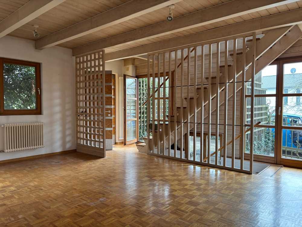 Im Souterrain befinden sich eine Einbauküche sowie ein Abstellraum (Keller) und eine Gästetoilette. Ebenerdig befindet sich das Wohnzimmer mit Zugang zur Terrasse. Die Terrasse wird bis zum Einzugstermin erneuert. Im ersten Stock befinden sich ein Schlafzimmer und das Badezimmer. Im Obergeschossen sind zwei etwa gleich große Zimmer. Im Außenbereich befindet sich noch ein kleiner Schuppen.