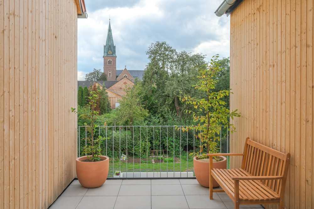 Direkter Zugang zum Balkon durch eine großzügige Flügeltür mit Blick auf das Flüsschen Wanne und ins Grüne.
