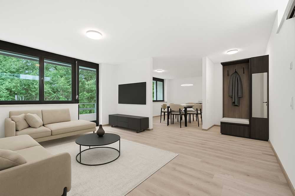 Der großzügige Wohn- und Essbereich ist lichtdurchflutet und bietet direkten Zugang zum Balkon – ideal zum Entspannen oder für einen Kaffee am Morgen.