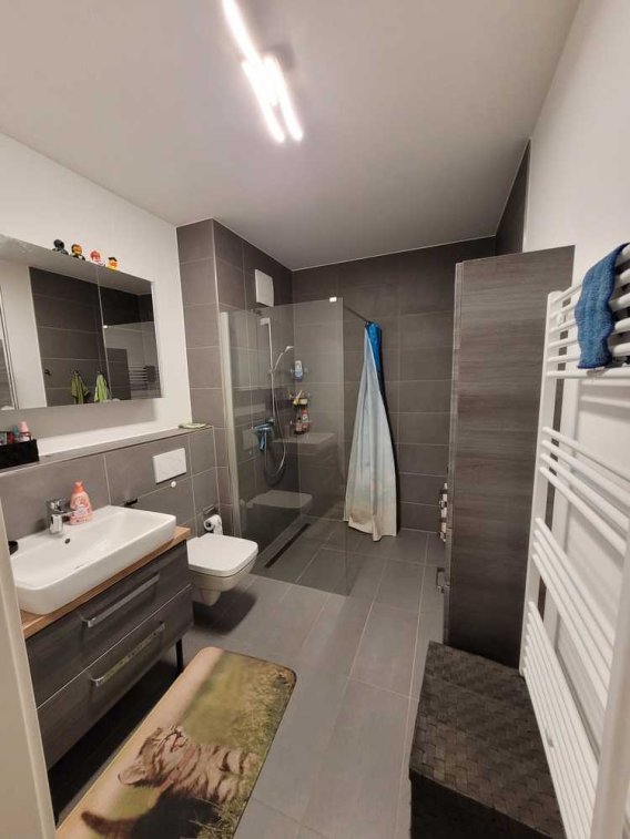Die Wohnung wurde Anfang 2023 fertig gestellt und ich war bisher der einzig Mieter. Das Haus liegt in einem modernen Neubau Projekt mit Grünanlagen und kleinen Spielplätzen. Die Nachbarschaft ist ruhig und sehr freundlich (WhatsApp Gruppe, in der man sich gegenseitig hilft).