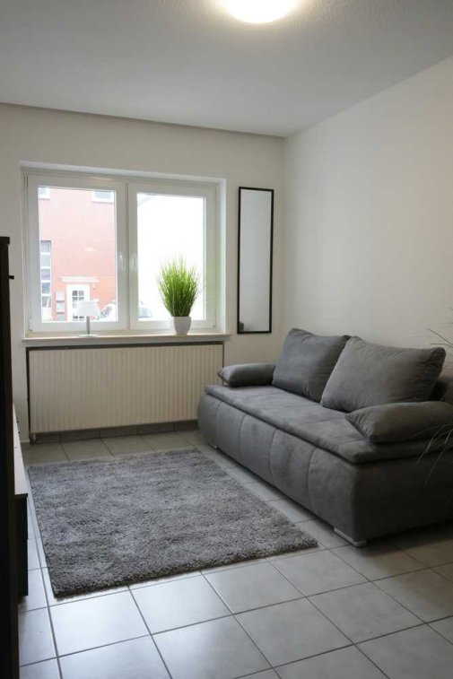 Zur Wohlfühlatmosphäre trägt bereits die neue Einrichtung bestehend aus einem Schlafsofa, Wohnschrank usw. Das lichtdurchflutete Zimmer und die Diele sind mit hellen und pflegeleichten Fliesen ausgelegt.