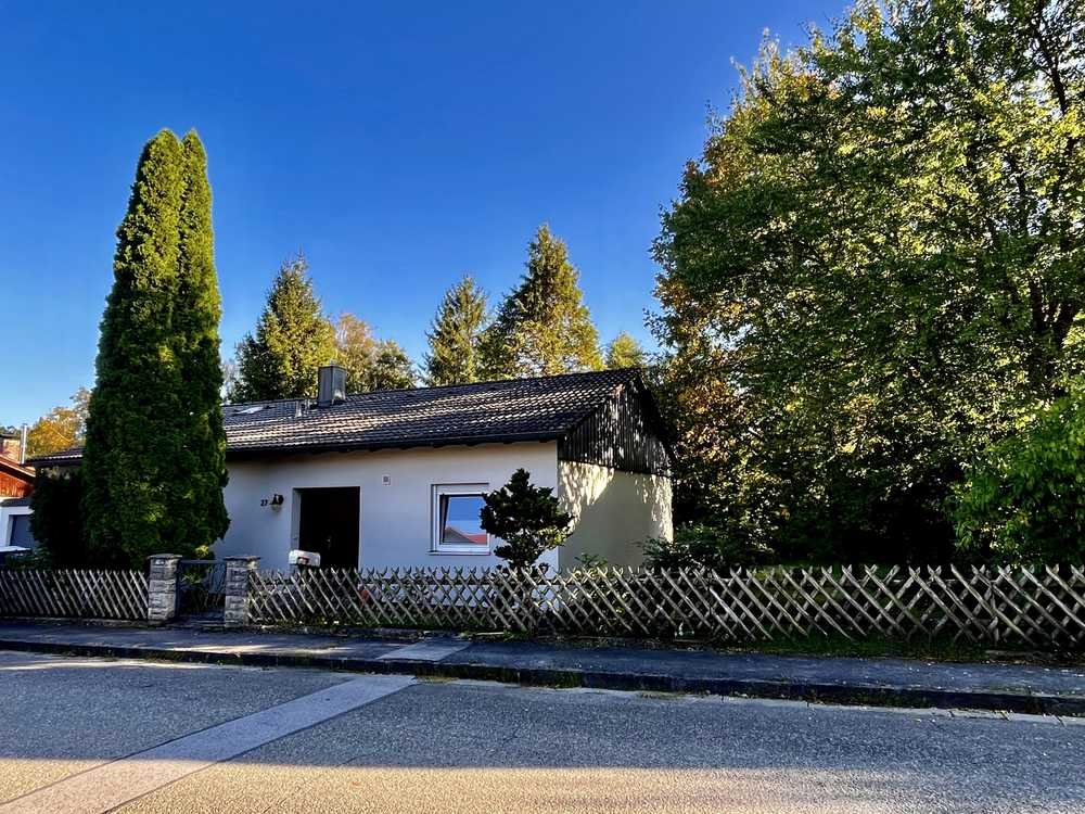 Das nach Süden ausgerichtete Wohnzimmer besticht durch Helligkeit und eine behagliche Atmosphäre. Ein separierter Essbereich lädt zu entspannten Mahlzeiten mit Familie oder Freunden ein. Von hier aus öffnet sich der Zugang zur sonnigen Terrasse – ein idyllisches Plätzchen. Ob beim Frühstück in der Morgensonne, beim Grillabend mit Freunden – hier verschmilzt das Leben im Haus nahtlos mit der umgebenden Natur. Der angrenzende, weitläufige Garten gleicht einem kleinen privaten Park: gepflegter Baumbestand und großzügige Grünflächen schaffen eine Oase der Ruhe und Entschleunigung. Der Garten bietet nicht nur Raum zum Entspannen, sondern auch zur aktiven Gestaltung – sei es mit Gemüsebeeten oder einer Hängematte. Wer die Natur liebt, wird hier sein ganz persönliches Paradies finden. Zurück im Inneren des Hauses führt ein kleiner Flur vom Wohnzimmer aus zu den privaten Wohnräumen: 1 helles Schlafzimmer, 2 gut geschnittene Büro oder Gästezimmer sowie ein freundlich gestaltetes Badezimmer mit Tageslicht, Dusche und Badewanne bieten ideale Voraussetzungen, konzentriertes Arbeiten oder persönliche Rückzugsmomente.