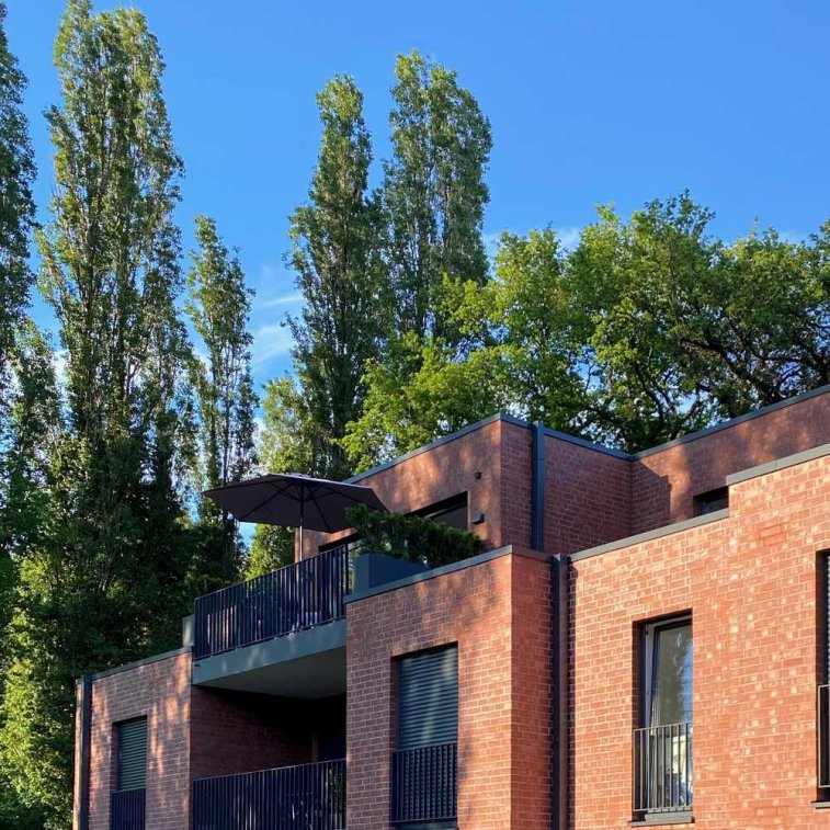 Im idyllischen Marl-Polsum entstand in grüner, zentraler Lage eine rot geklinkerte Wohnanlage mit 6 WE, in moderner Architektur.