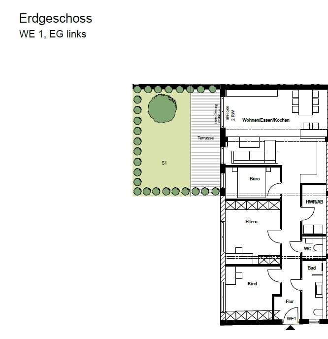 Genießen Sie den Komfort einer ebenerdigen Wohnung, die Ihnen nicht nur barrierefreies Wohnen ermöglicht, sondern auch mit einer durchdachten Raumaufteilung überzeugt. Die hellen und großzügigen Räume bieten eine angenehme Atmosphäre und laden zum Wohlfühlen ein.