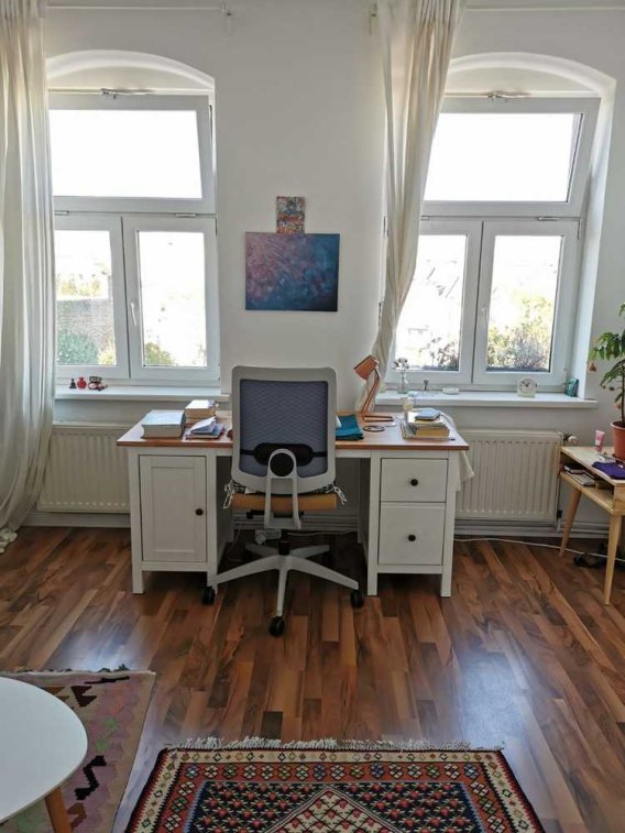 Ich selbst bin eine ruhige, zuverlässige und gepflegte Person, die viel am Schreibtisch arbeitet. Die zukünftige Mieterin sollte ähnliche Eigenschaften mitbringen. In der Wohnung darf nicht geraucht werden. Ich bitte daher um eine kurze Vorstellung mit Angaben zu Beruf, Grund des Aufenthalts in Berlin und Interessen.