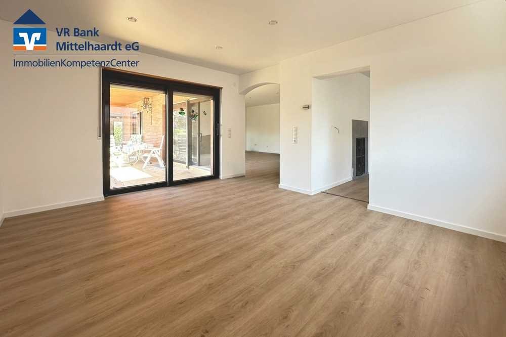 Vom Wohnzimmer aus gelangen Sie ebenfalls auf die sonnige Terrasse mit gemütlichen Sitzmöglichkeiten. Darüber hinaus gehört ein Garten zur Wohnung, der zur alleinigen Nutzung bereitsteht und zusätzlichen Raum für Erholung im Grünen bietet.