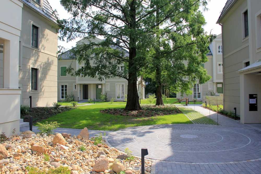 Die Wohnung befindet sich in Hochparterre mit Blick in auf den begrünten, parkähnlich angelegten Garten des Ensemble, in