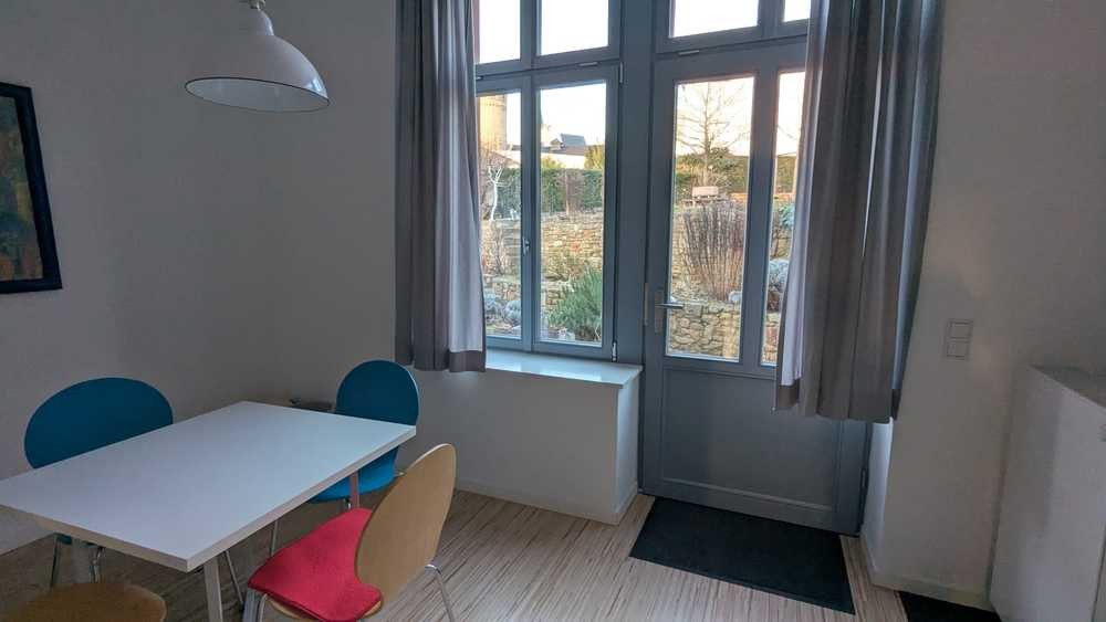 Die Wohnung hat einen eigenen Eingang. Man betritt sie über 4 Stufen und befindet sichin der geräumigen Wohnküche die voll ausgestattet ist.