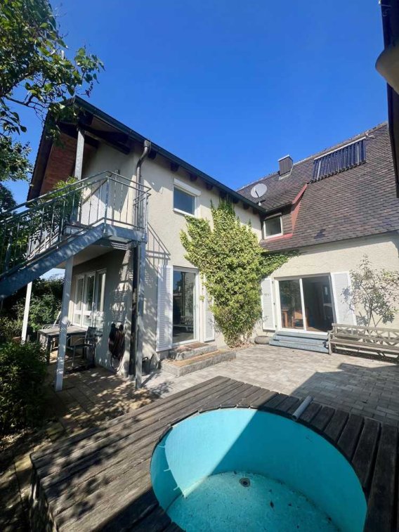 Im ersten Obergeschoss befinden sich drei Schlafzimmer, sowie ein Durchgangszimmer/Atelier, welches beispielsweise als Arbeitszimmer genutzt werden kann. Das größte dieser Zimmer ist galerieartig aufgebaut und verfügt über einen Balkon, über welchen man mittels Außentreppe einen direkten Gartenzugang erhält.