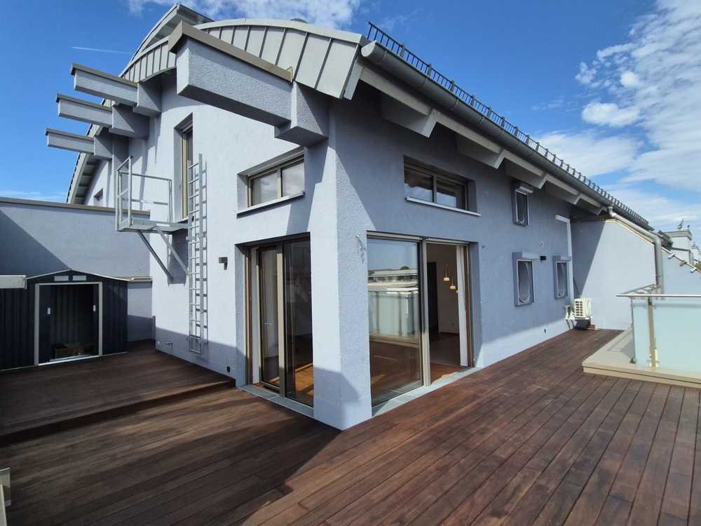 This luxurious 2.5-room penthouse maisonette apartment is located on the 4th floor of a very well-maintained 18-unit building in the popular Mainz-Gonsenheim district, in an extremely quiet yet central location.