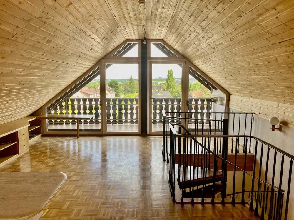 • Der Zugang zum großen Balkon mit wunderschönem Weitblick über Walluf – der perfekte Ort für laue Sommerabende und ein Glas Rheingauer Riesling ��