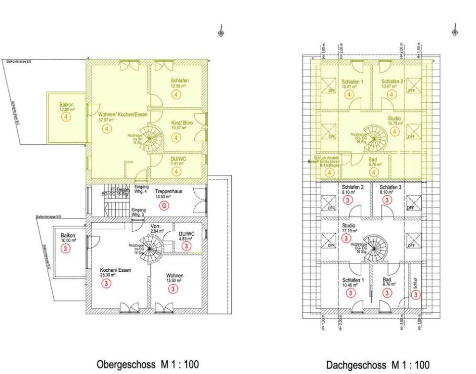 Das Dachgeschoss erweitert die Wohnung um ein helles Studio, zwei weitere Schlafzimmer und ein zusätzliches Duschbad. Damit ist die Wohnung ideal für Familien, die Wert auf viel Raum und moderne Architektur legen.