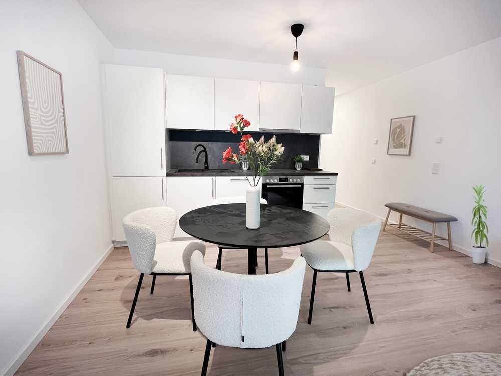 Diese lichtdurchfluteten Wohnungen überzeugen durch einen eleganten Vinylboden in heller Holzoptik und freundlich geflieste Badezimmer. Zur Ausstattung gehört eine moderne Einbauküche mit allen Elektro-Großgeräten. Für ein angenehmes Wohnklima sorgt die Fußbodenheizung.