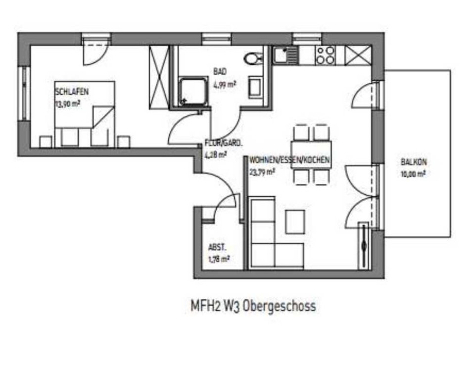 Diese wunderschöne 2-Zimmer Wohnung mit Baujahr 2022 befindet sich im 1. OG eines 5 Parteienhauses. Die Wohnung erreichen Sie bequem über das Treppenhaus direkt aus der Tiefgarage. Sie verfügt über einen großen Balkon auf der Südseite, 1 Schlafzimmer, 1 Badezimmer, einer Abstellkammer und einem offenen Küchen-Wohn- und Essbereich. Das Badezimmer ist mit WC, Waschbecken, einer Bodengleichen Dusche mit Glastrennwand und Handtuchheizkörper ausgestattet.