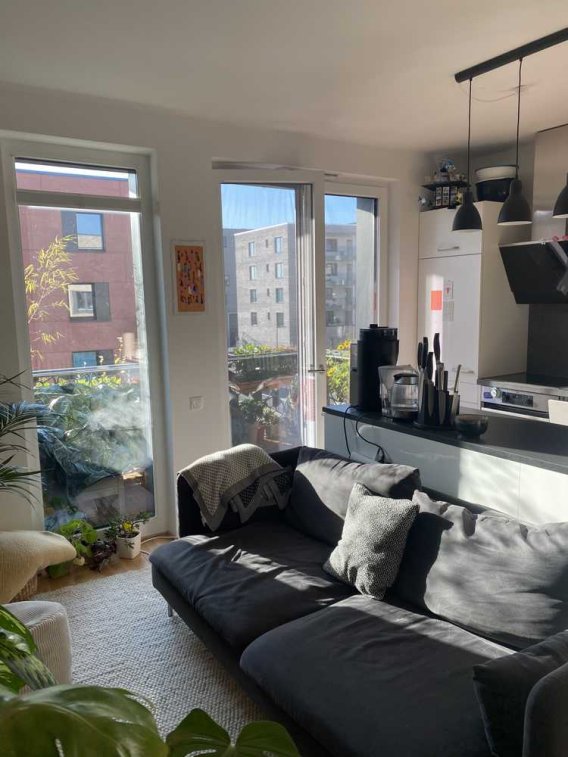 Da ich mit meinem Freund zusammenziehe, löst sich unsere liebevolle WG leider auf. Die Wohnung ist sehr hell und freundlich – besonders der Balkon bekommt viel Sonne ab und war bisher ein echtes Pflanzenparadies �.