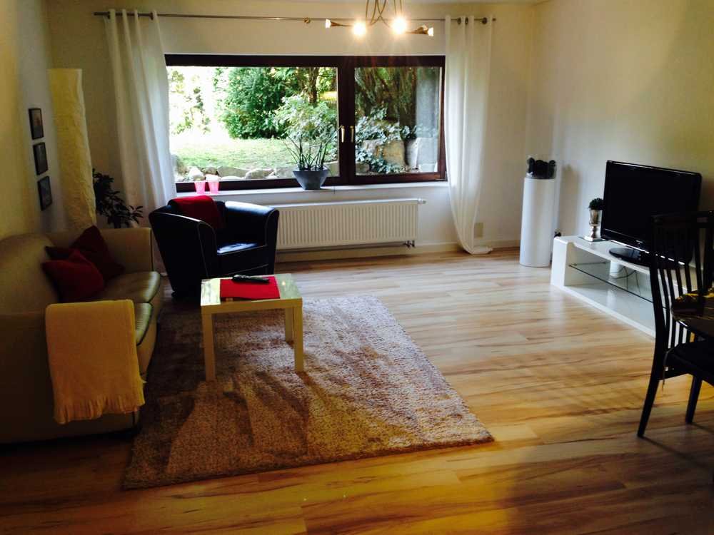Komplett ausgestattete Wohnung. Küchenzeile mit Geschirrspüler, Kühlschrank, Backofen und Cerankochfeld. TV-Flachbildschirm im Wohn/Ess- sowie im Schlafzimmer.