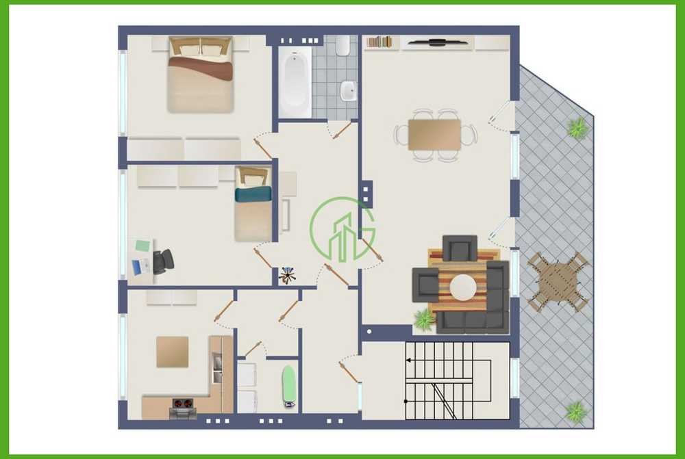 Diese helle und großzügige 3-Zimmer-Wohnung mit ca. 114 m² Wohnfläche befindet sich im 2. Obergeschoss eines laufend modernisieren Wohn- und Geschäftshauses aus dem Baujahr 1956. Sie verfügen hier über ein großes Wohn-/Esszimmer, ein Schlafzimmer, ein Kinder-, Gäste- oder Arbeitszimmer, eine Küche mit sehr hochwertiger Kücheneinrichtung, ein aktuell modernisiertes, innenliegendes Bad mit ebenerdiger Dusche, sowie einen Hauswirtschaftraum. Ein großer Balkon in Südlage sowie ein Gemeinschaftsgarten sind ebenfalls Bestandteil dieser Wohnung. Ein Aufzug ist leider nicht vorhanden.