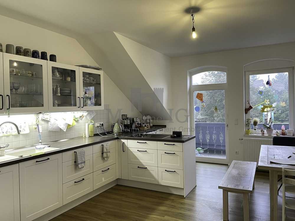 Die große Wohnküche ist ein weiteres Highlight der Wohnung. Sie bietet nicht nur Platz für eine moderne Einbauküche und einen Essbereich, sondern verfügt auch über Zugang zum zweiten Balkon, auf dem Sie den Tag mit einem Kaffee in der Morgensonne beginnen oder abends entspannt ausklingen lassen können.
