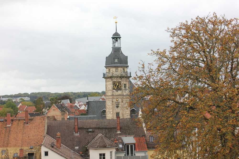 Die Wohnung liegt sehr zentral, direkt am Großen Markt von Altenburg, und bietet damit kurze Wege zu Einkaufsmöglichkeiten, Cafés, Restaurants und öffentlichen Verkehrsmitteln.
