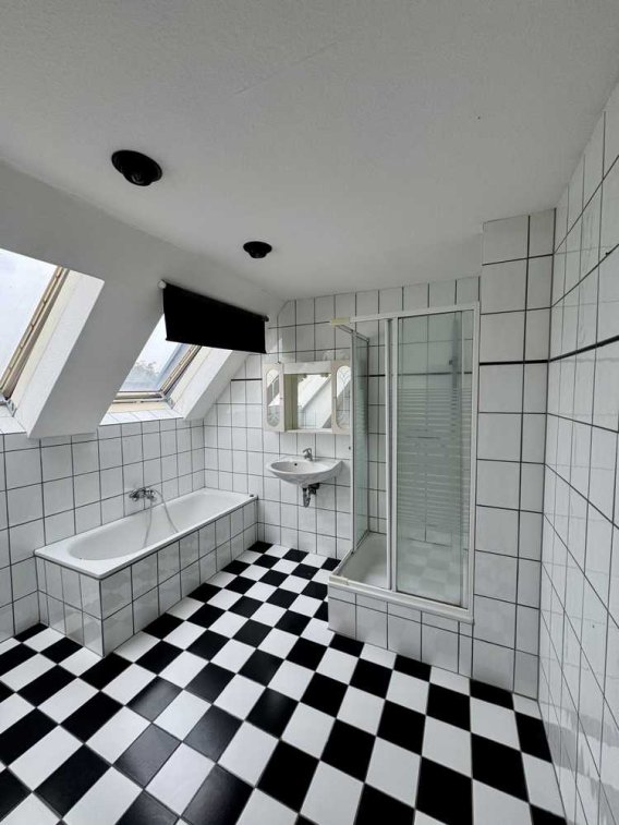 Lichtdurchflutete Wohnung mit Echtholzparkett sowie großen Dachflächenfenstern in Schlafzimmer und dem großen Wohlfühlbad mit Dusche und Wanne. Neue Einbauküche von Nolte, die zur Wohnung gehört. Die Elektrik ist in 2025 erneuert worden.