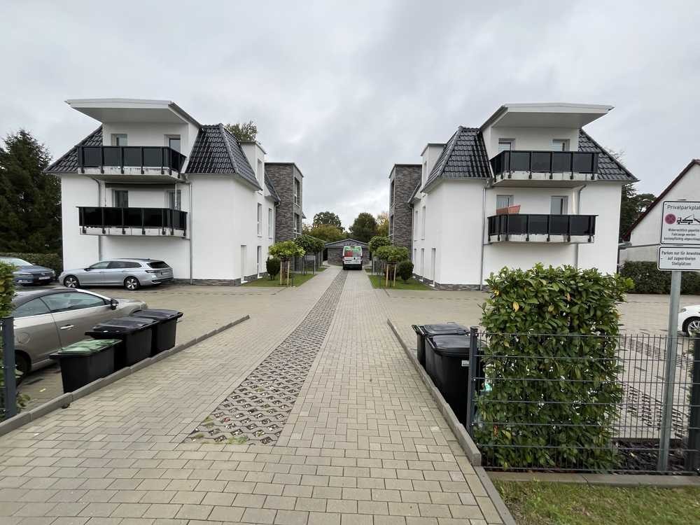 Die Wohnung befindet sich im rechten Gebäude, in der ersten Etage mit Blick ins Grüne vom Balkon aus.