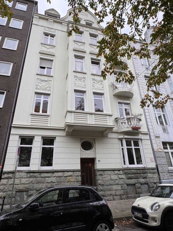Die helle Wohnung (c. 63 Quadratmeter) mit ruhigem Balkon in den Innenhof ist auf der Volksgartenstraße direkt am Eingang zum Volksgarten und der S-Bahn Haltestelle Volksgarten gelegen.